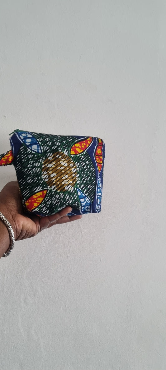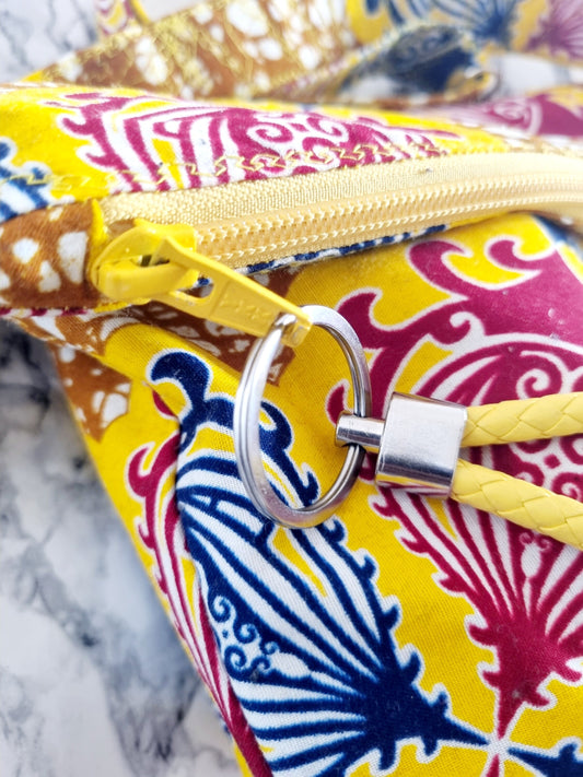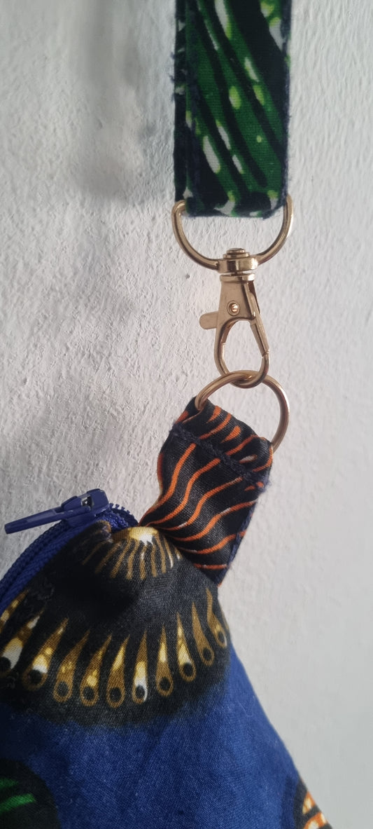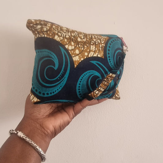 African Fabric, Swirls, Zipped Pouch with Carry Strap